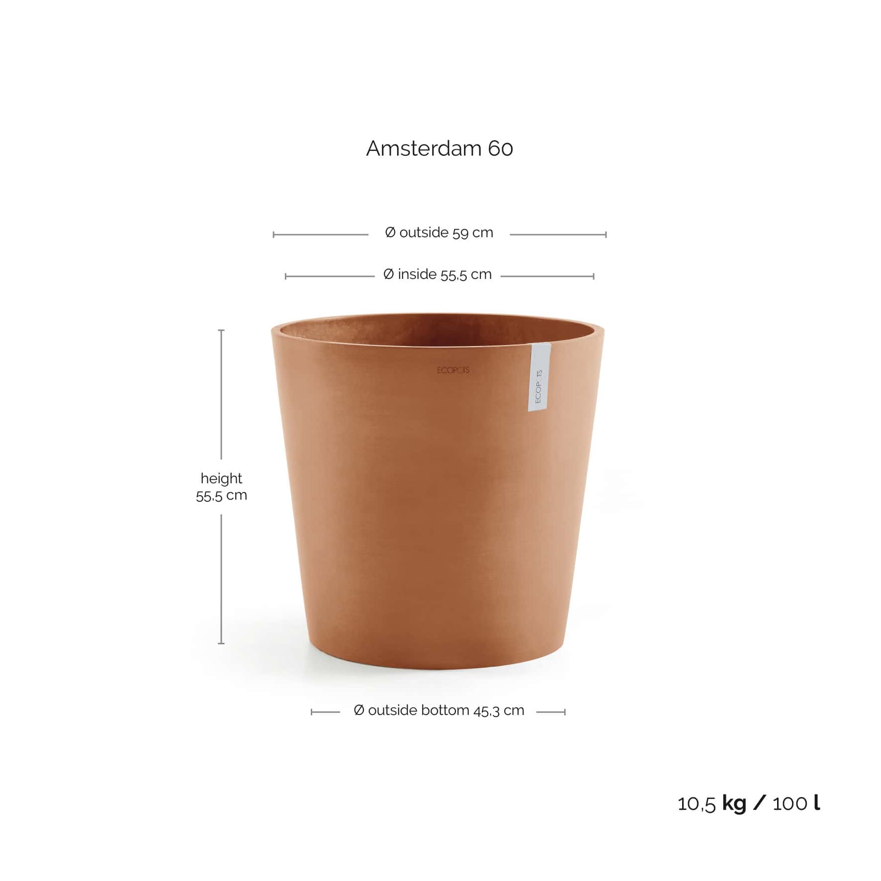 Ecopots er laget for å vare. De er solide, uknuselige, lette og frostbestandige. Dette gjør dem egnet for både innendørs og utendørs bruk.